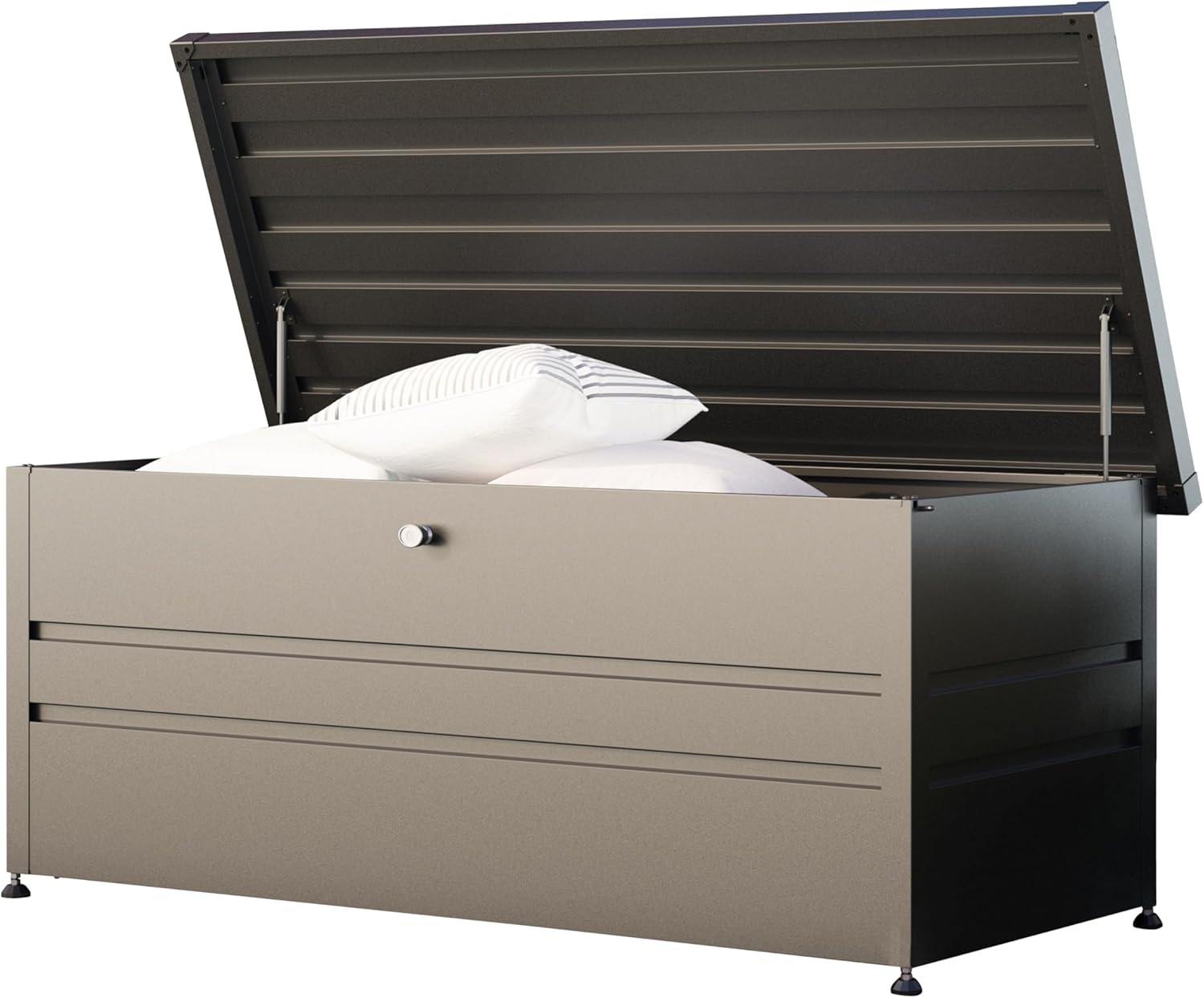 Arcón Exterior de Acero Galvanizado, Baúl Almacenaje Exterior, Caja de Almacenaje para Jardín, Arcón Multifuncional para Jardín, Patio y Terraza, Antracita 171x99x93 cm