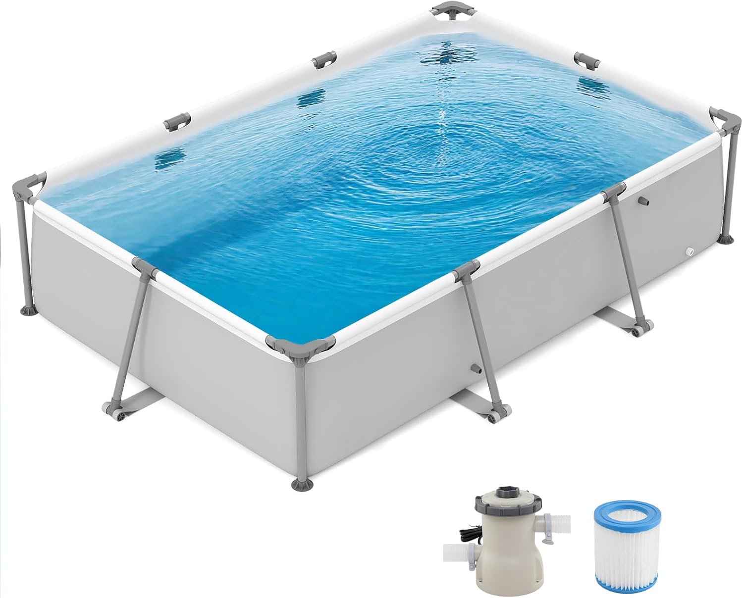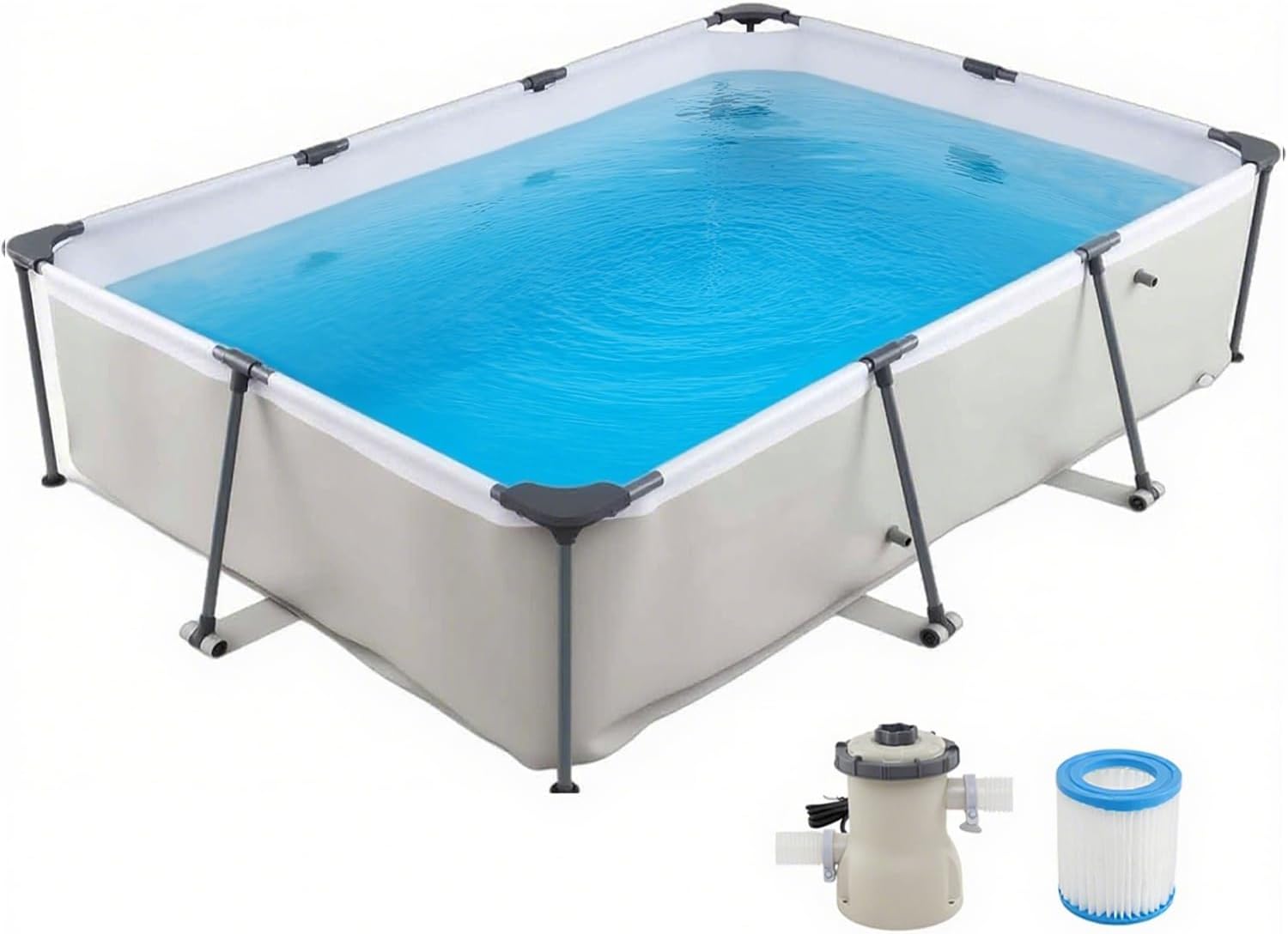 RELAX4LIFE Piscina Desmontable Rectangular 3701L con Estructura Metálica Revestida, Paredes PVC de 3 Capas, Depuradora y Bomba para 3-5 Personas, Piscina Rectangular para Niños, Montaje Rápido Gris