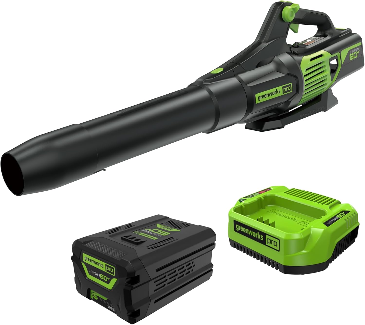 Greenworks Soplador de Hojas inalámbrico de 60 V 610 CFM, batería de 2.5 Ah y Cargador rápido