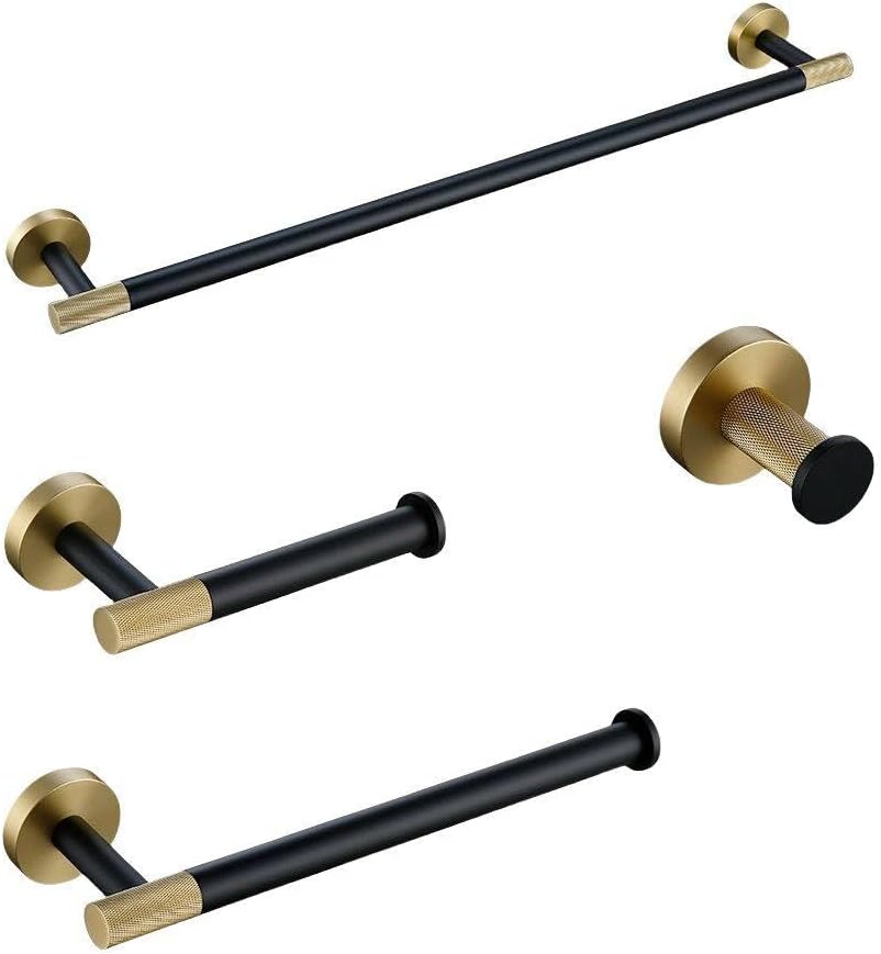Toallero montado en la Pared Toallero Soporte de Papel de Oro Cepillado y Soporte para Toallas Gancho Negro Mate moleteado y portaescobillas de Inodoro de Colores Combinados, Kit, 60