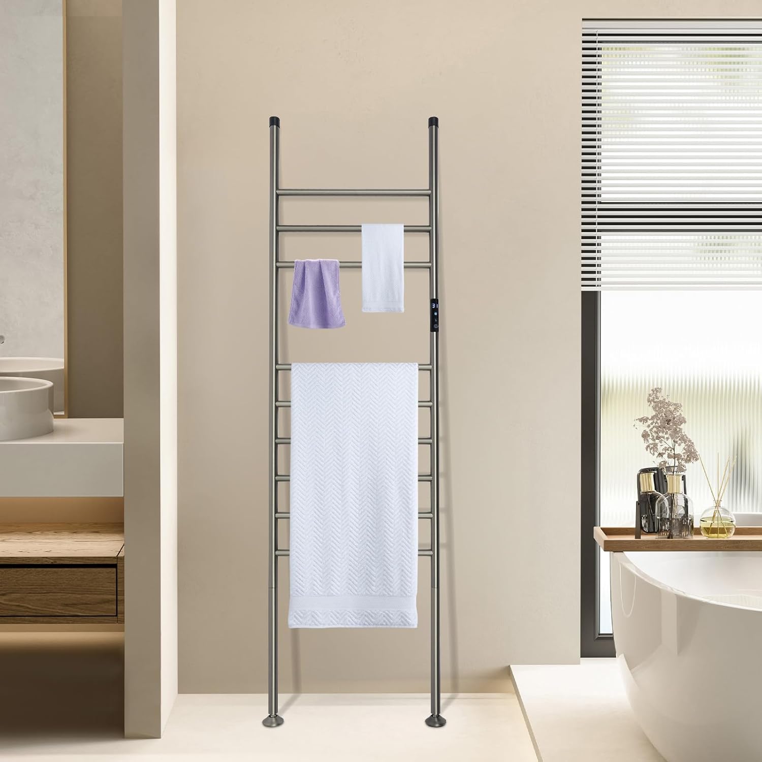 Toallero eléctrico de pie de 150 W, para secar toallas, toallas de baño, ropa interior, calcetines gris gris