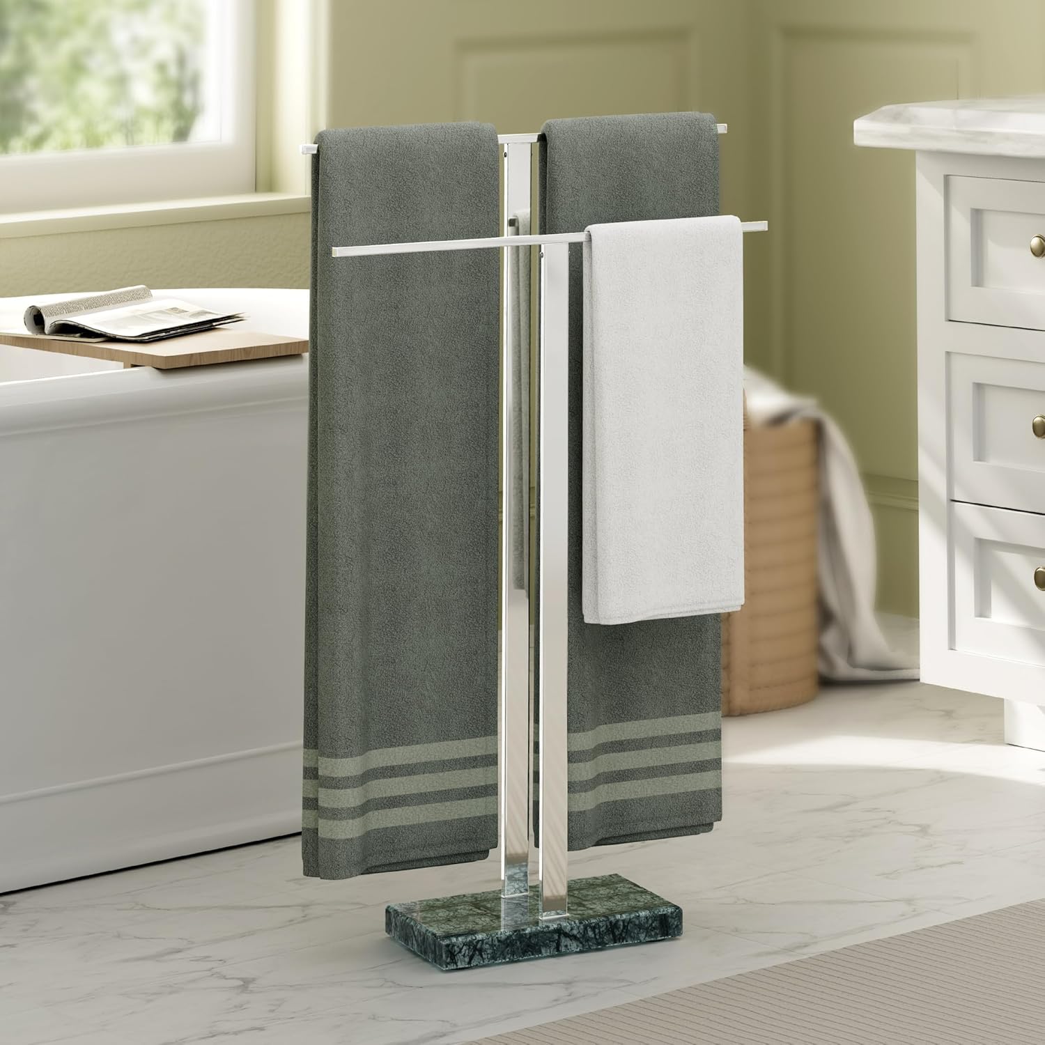 KES BTH217-GPS, Toallero de pie con base de mármol natural verde para suelo de baño, soporte para toallas de baño o mano con 2 niveles, acabado pulido