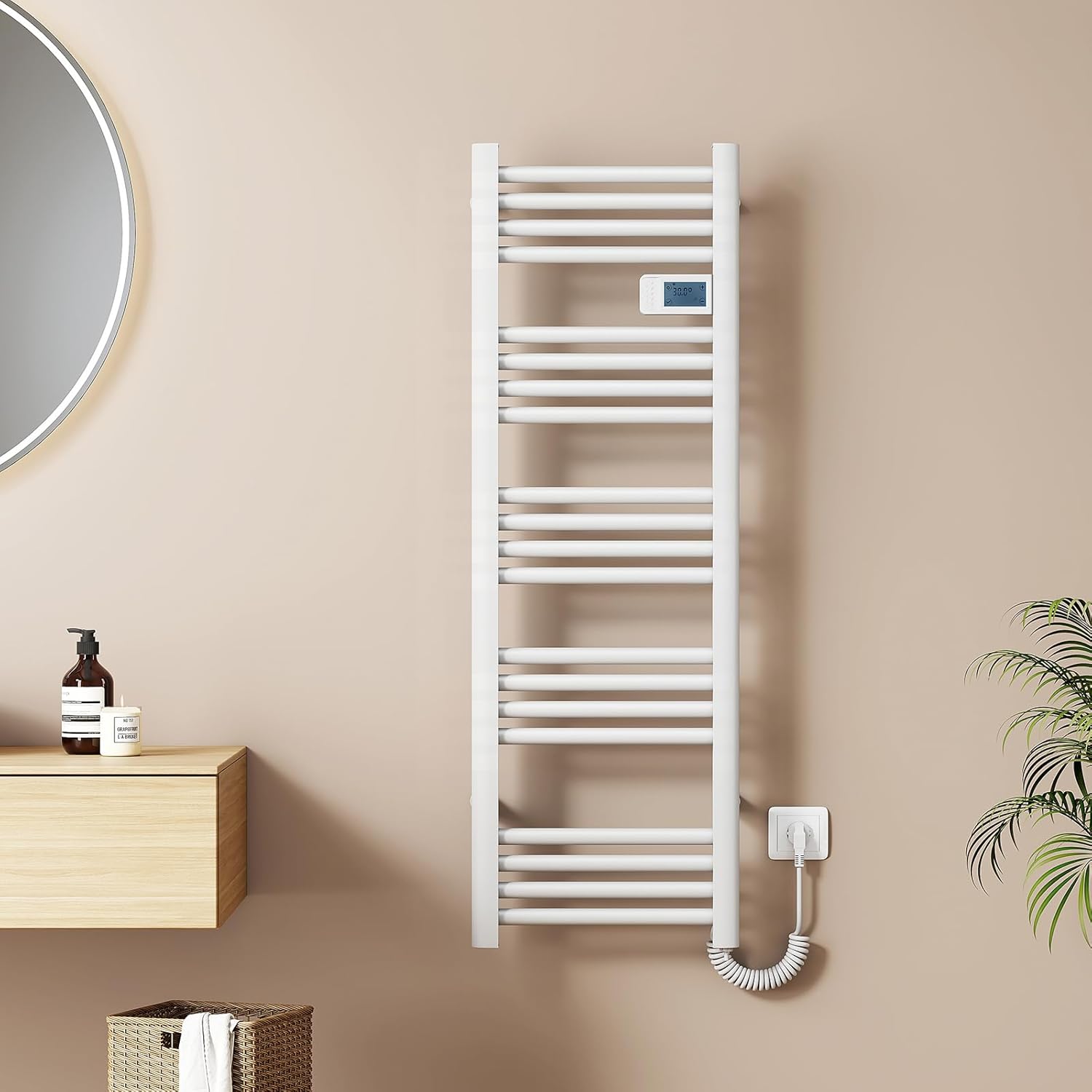 EMKE Toallero Eléctrico baño 1200 x 400 mm, Radiador Toallero Eléctrico con Interruptor Táctil y Temporizador, Calentador de Toallas Blanco 450W, Calienta Toallas baño Eléctrico