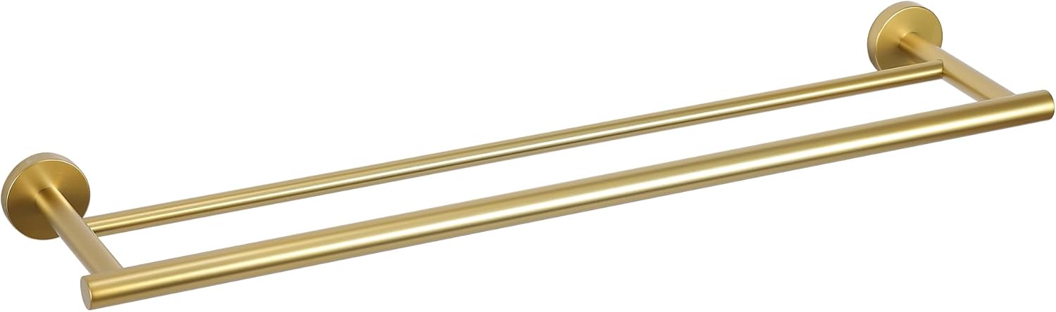 SEIDO Toallero de acero inoxidable 304 para baño, toallero de mano resistente con diseño de 2 barras, ahorro de espacio, solución de almacenamiento de toallas de baño, oro satinado