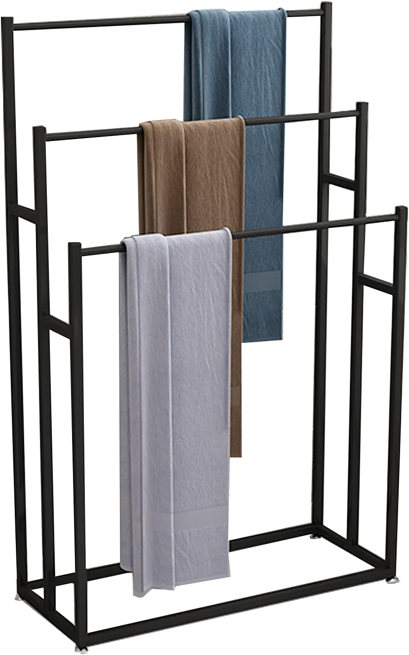 Toallero de pie, Toallero de pie móvil de Acero Inoxidable sin Perforaciones Toallero Vertical Giratorio Elevado for baño Black