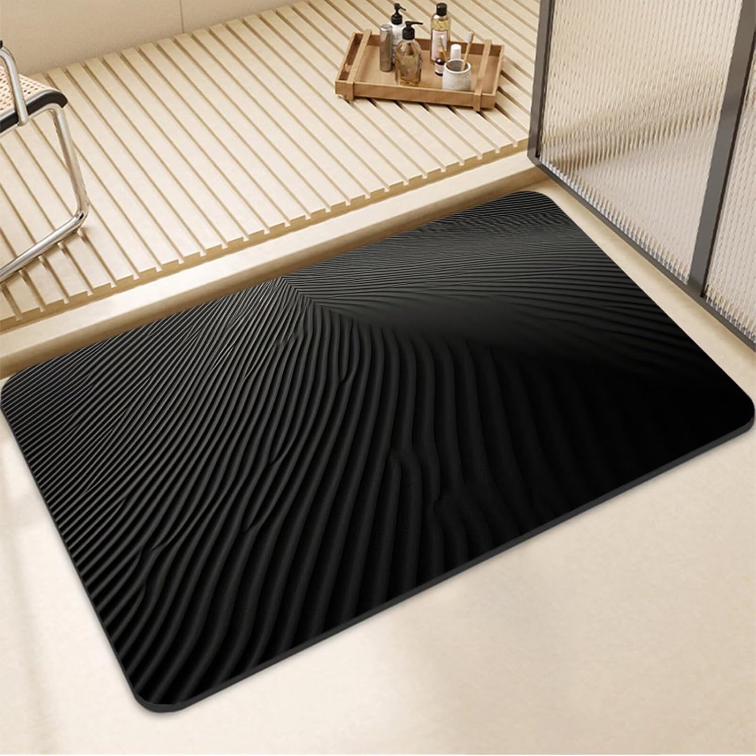 Alfombra de Baño Antideslizante Alfombrilla Baño Diatomita Lavable a Máquina 160x230cm, Alfombra Cocina Súper Absorbente Alfombras Cocina de Secado Rápido, Rug para Entrada Bañera Ducha Charcoal 7-205