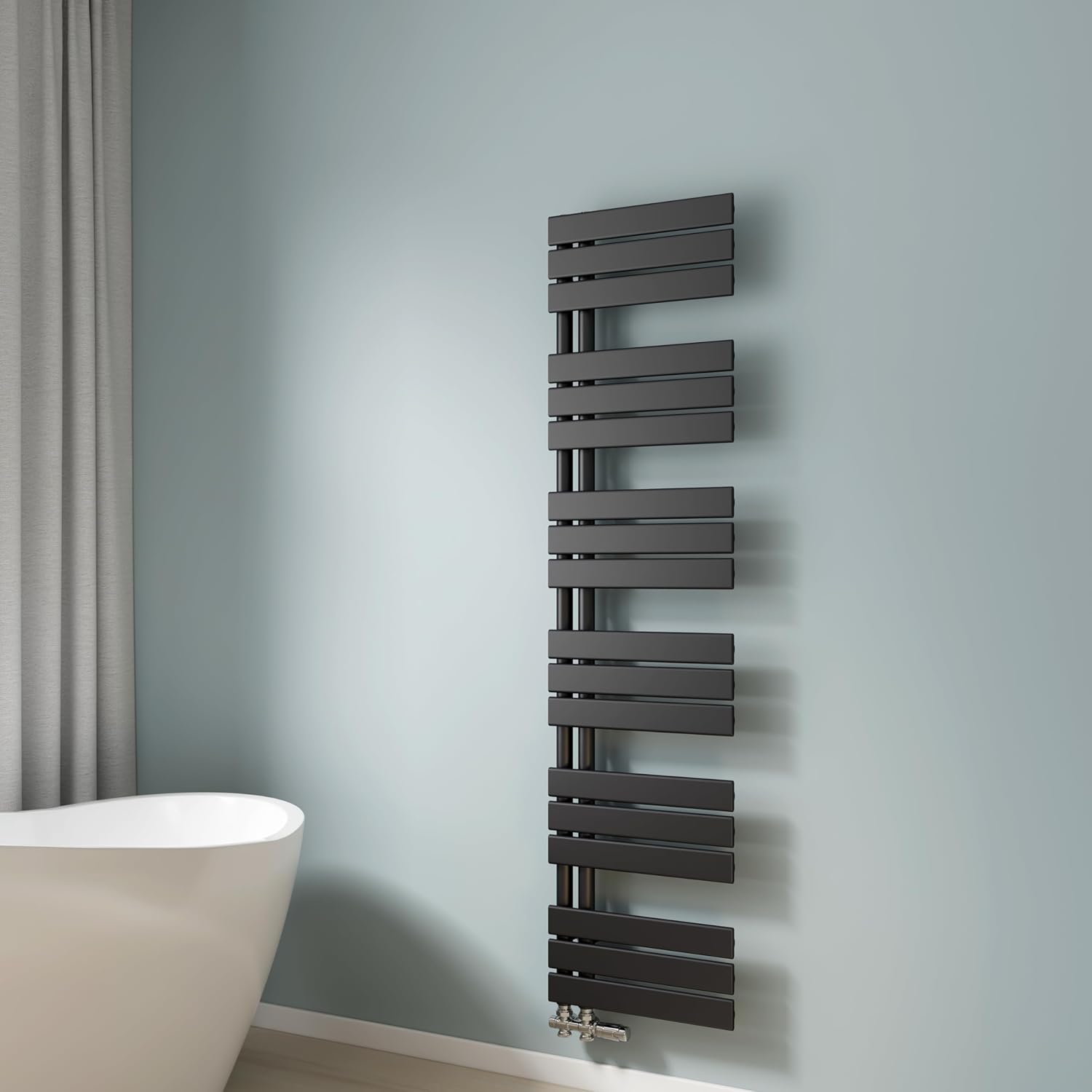 EMKE Toallero de Agua Caliente, 1599x400 mm, Radiador de Baño de Pared, Color Negro, 684W, Toallero Baño, Instalación Fácil, Diseño Moderno