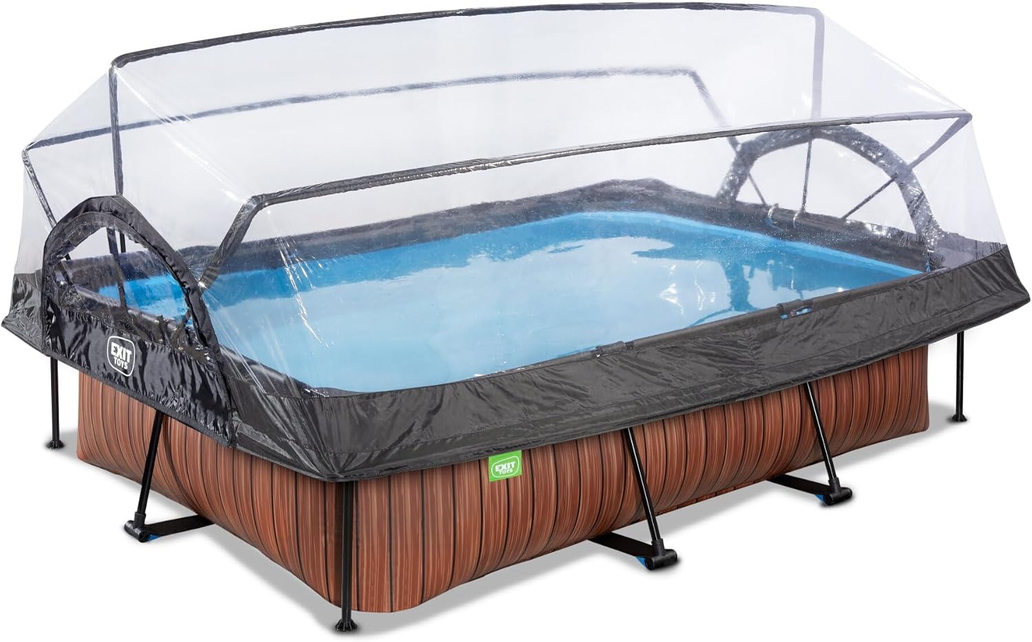 EXIT Toys Wood Pool con Cubierta Multifuncional - 300x200x65cm - Piscina de Marco Rectangular Compacta con Bomba de Filtro de Cartucho - Fácil Acceso - para Agua Limpia y Cálida - Marrón
