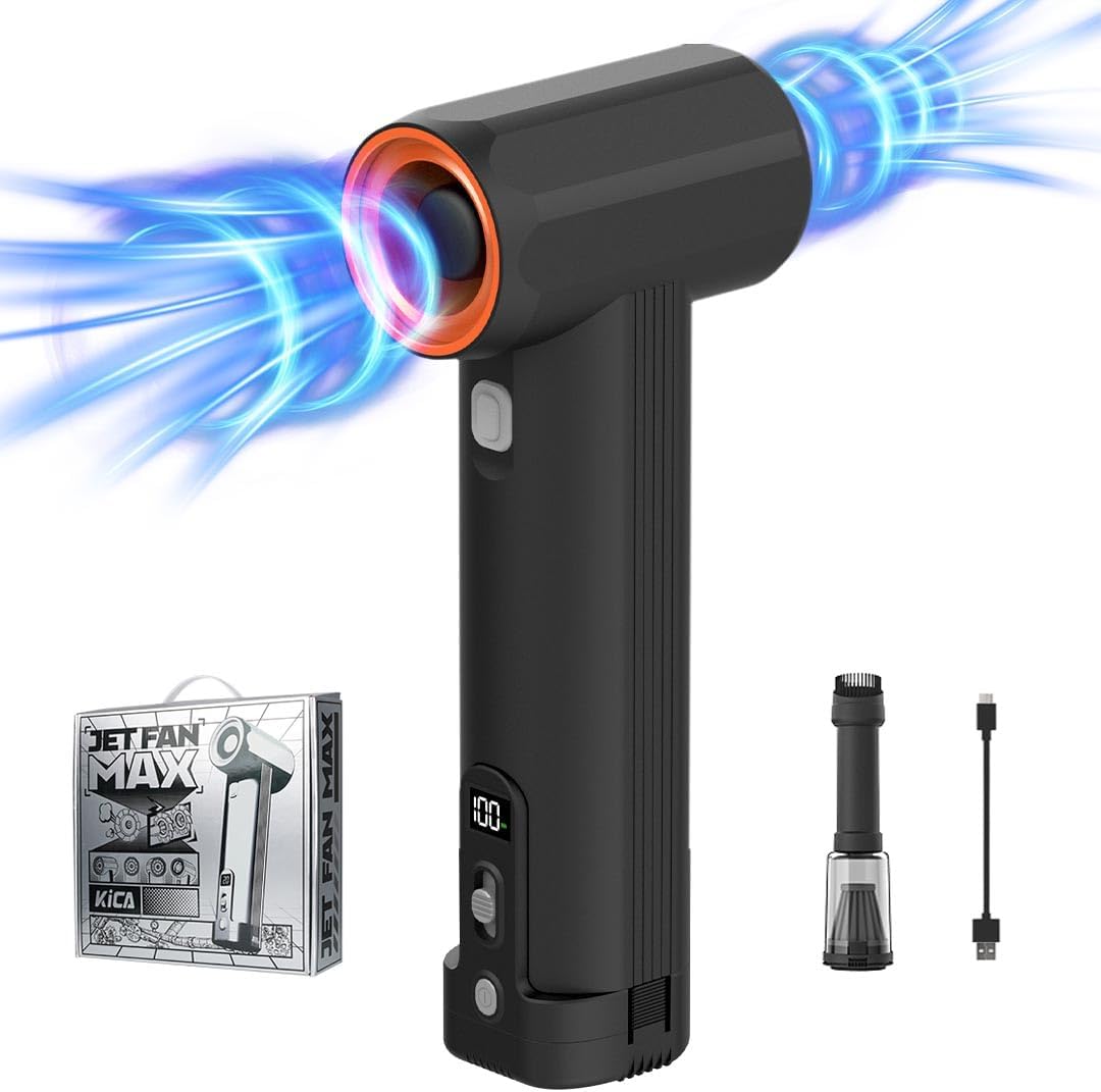 Kica JetFan MAX - Soplador de Polvo eléctrico en seco para Coche, con Flujo de Aire de 331 km/h, para Hojas, Nieve, Gotas de Agua y Polvo