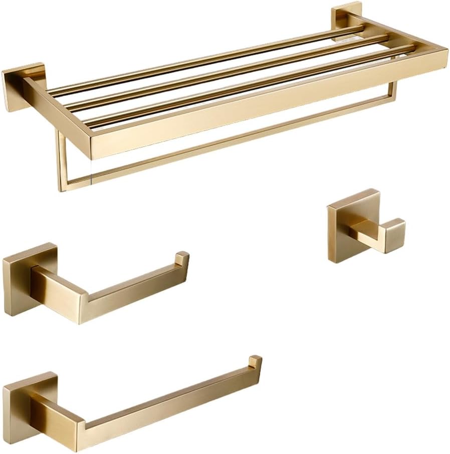 Toallero de Oro Mate Barra de Toalla de Acero Inoxidable 304 Estante de Toalla Doble Soporte de Papel Porta pañuelos Portaescobillas, 1
