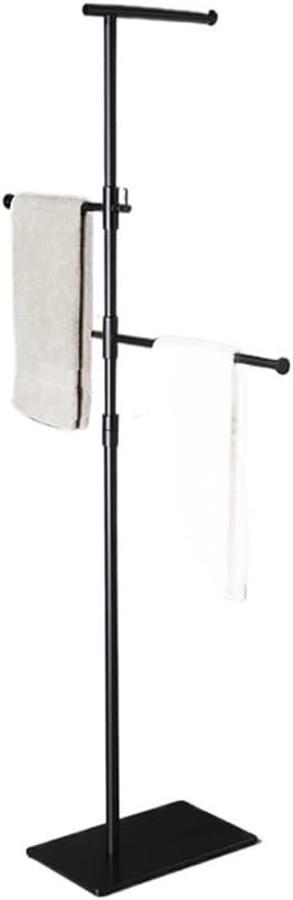 Toallero de pie, Toallero de pie móvil de Acero Inoxidable sin Perforaciones Toallero Vertical Giratorio Elevado for baño Black