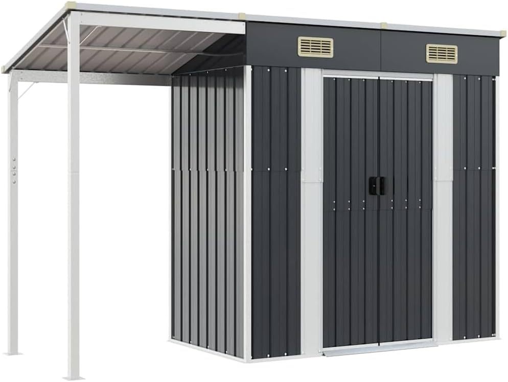 vidaXL Cobertizo Jardín Tejado Largo, Caseta con Almacenaje, Cobertizo de Herramientas Leña, Caseta de Muebles Equipos, Acero Antracita